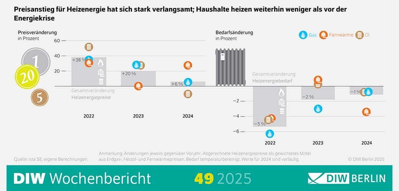 DIW Wärmemonitor 2024: Heizenergiepreise legen um sechs Prozent zu