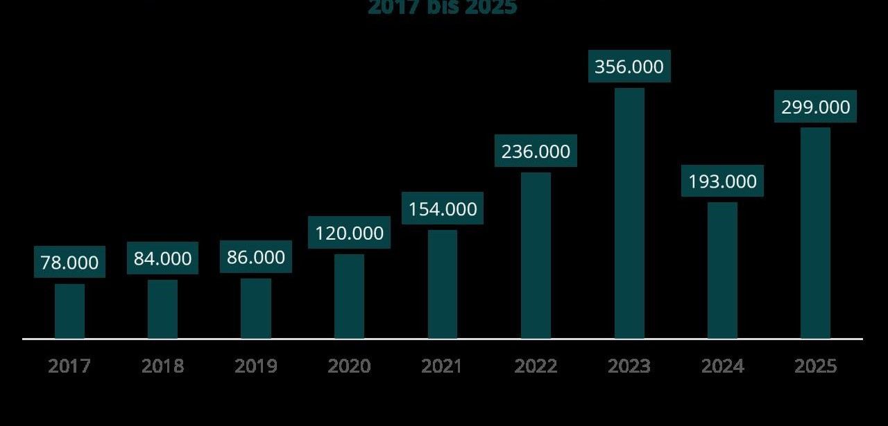 Photovoltaikanlagen im Leistungsbereich von fünf bis dreißig Kilowatt Peak verzeichneten im Kalenderjahr 2025 einen weiteren Rückschlag mit einem Absatzminus von rund dreißig Prozent. Dagegen konnten Batteriespeicher eine positive Entwicklung von circa zwei Prozent verzeichnen. Infolgedessen ging der Markt für Balkonkraftwerke erstmals um etwa drei Prozent zurück und belief sich auf rund 430.000 Neuanlagen. Diese gegensätzlichen Trends zeigen die hohe Marktvolatilität in der Kleinstanlagenbranche auf.