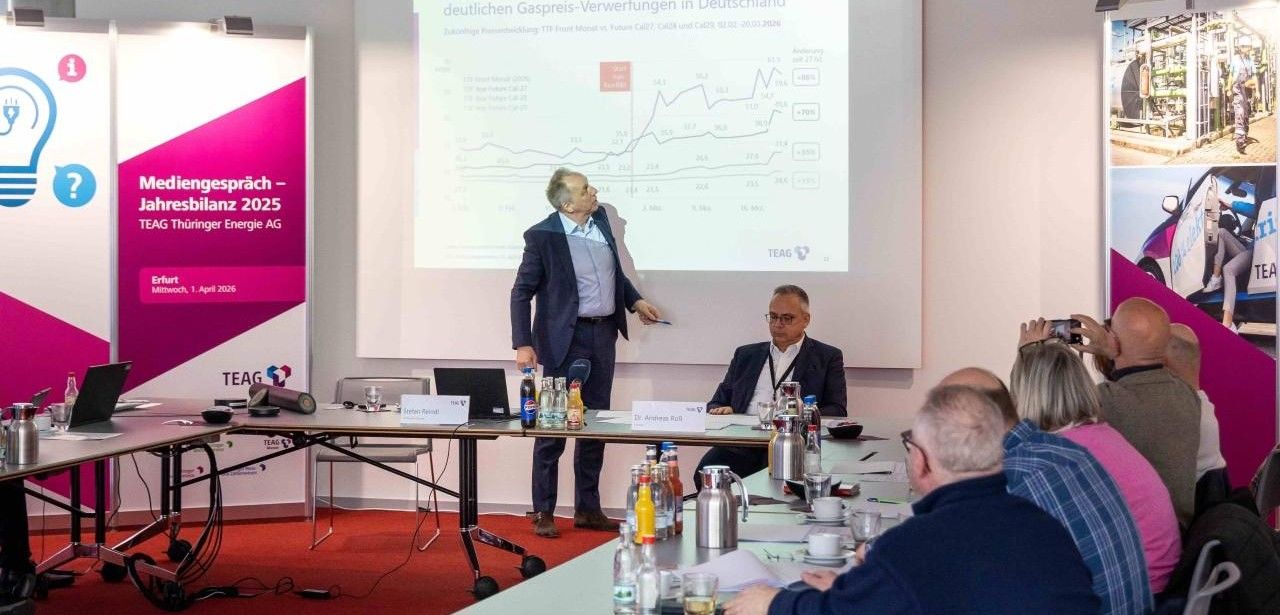 Mit der Schließung der Straße von Hormus als Folge des Iran-Konflikts kam es zu einer deutlichen Reduzierung des globalen Gasimports und einer unmittelbaren Preisanpassung von mehr als 80 Prozent. Auch wenn diese Preiszuwächse moderater ausfallen als im historischen Höchstjahr 2022, beobachtet die TEAG fortlaufend die Marktvolatilität. Parallel steigert der Konzern die Eigenversorgung über erneuerbare Energien und optimiert seine internationalen Beschaffungsverträge zur Risikoabsicherung. Gleichzeitig sichert sie damit Versorgungssicherheit und stärkt Netzinfrastrukturen.